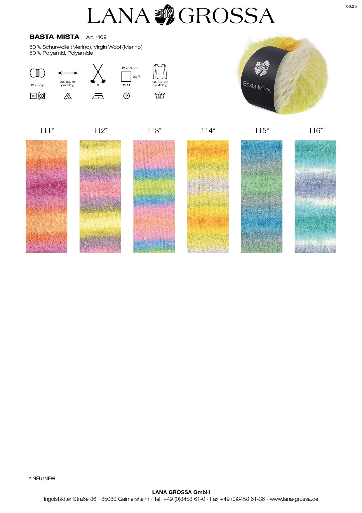 Basta Mista ist ein kreatives Effektgarn mit Fake-Fur-Charakter, das durch seine locker verzwirnte Struktur und den Mix aus Fransengarn und feinen Merinofasern begeistert. Die einzigartige Kombination erzeugt eine flauschige, voluminöse Optik mit leichtem Glanz – perfekt für modische Highlights, Accessoires oder extravagante Akzente in Strickprojekten.